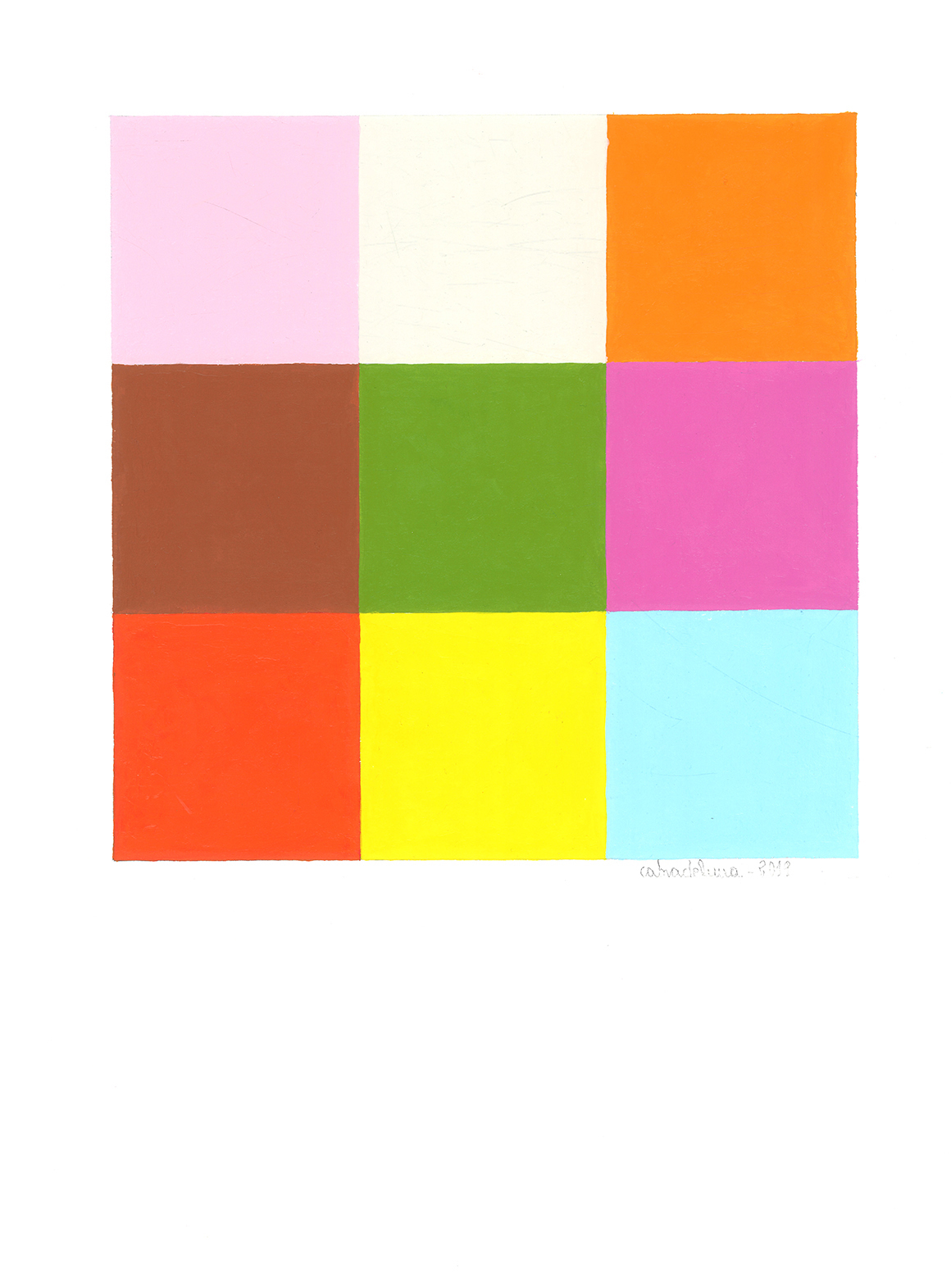 Categorías Pintura y dibujo 2005-2020 Nueve cuadros A Autor de la entrada Por admin Fecha de la entrada 15 diciembre, 2023 Título: Nueve cuadros A Técnica: Medidas: Papel 43 x 41 ctms. Mancha 23 x 23 ctms. Año: 2019 ← S/T → Nueve cuadros B